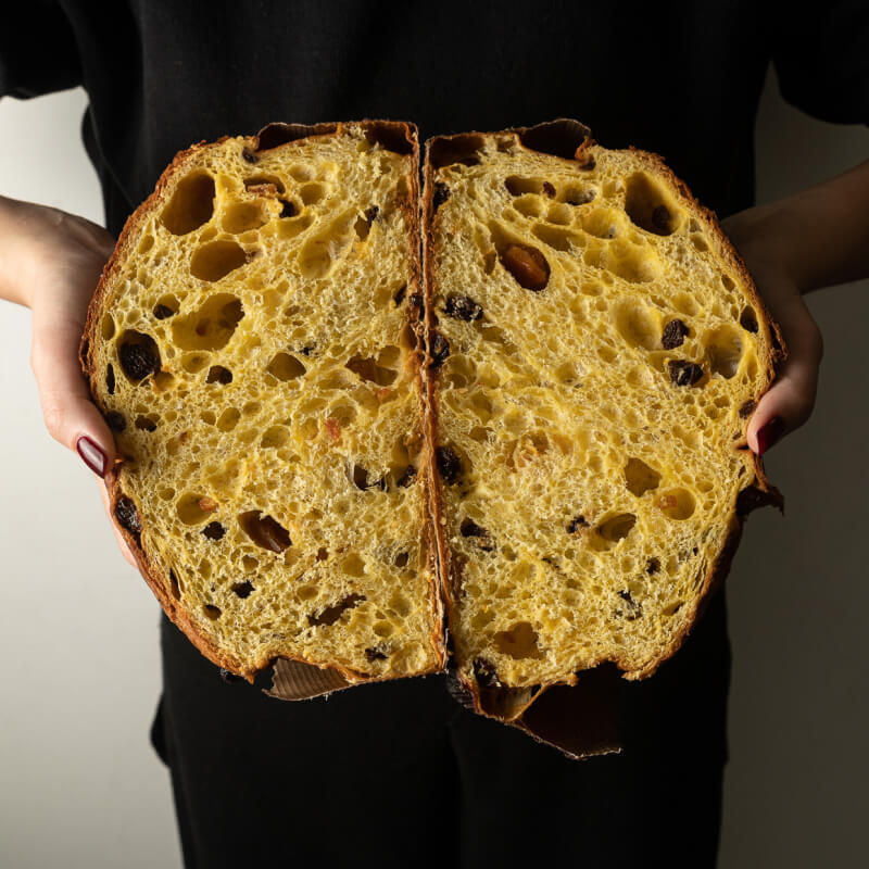 Ingredienti: Farina di grano tenero bio Molino Agostini, Lievito madre, Miele millefiori “Terre di Ea”, Burro francese, Canditi artigianali “Christian Castorani”.